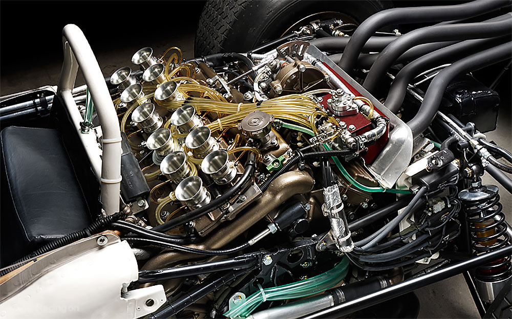 Motor Ford-Cosworth DFV — uno de los V8 de los años 60-70, muy emblemático. Una buena para la era de motores atmosféricos clásicos. -